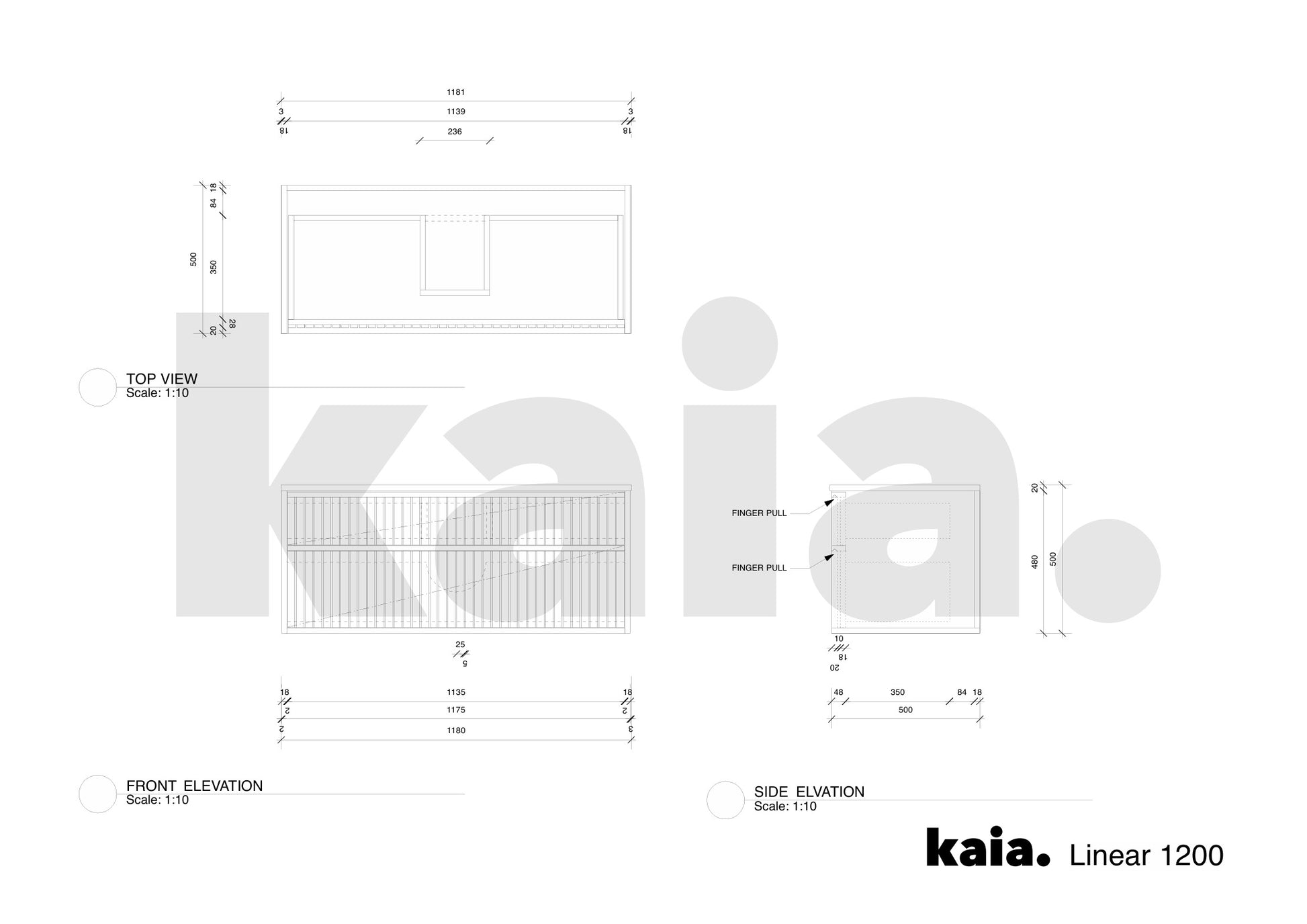 - 1190mm (w) x 500mm (d) x 500mm (h)